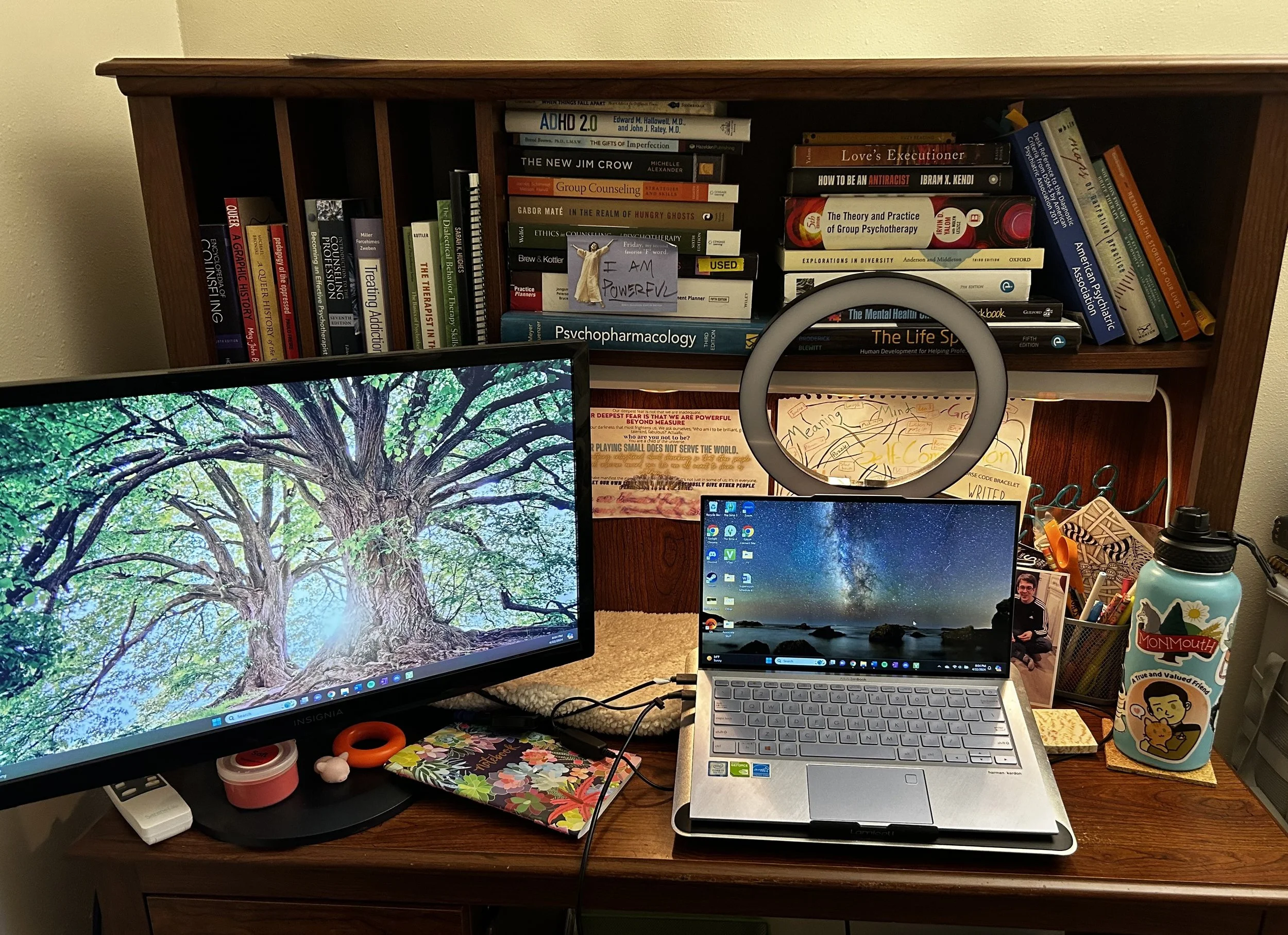 I am a writer. Before everything else, before I could even write words, I have always been a writer. Stories are my life. Counseling called to me as a way of influencing people’s stories for the better: of guiding them to the path they need. Of course, real life is more than just stories. We still live every day in the mundane and smaller moments, too. In those everyday moments outside of writing and counseling, I love to read, paint, play board and tabletop games, take walks in nature, do puzzles, play Stardew Valley, listen to musicals, and hang with my cats. When I find myself getting too stuck in the rote or disengaged with life, I try to ask myself: what’s beautiful right here, right now?